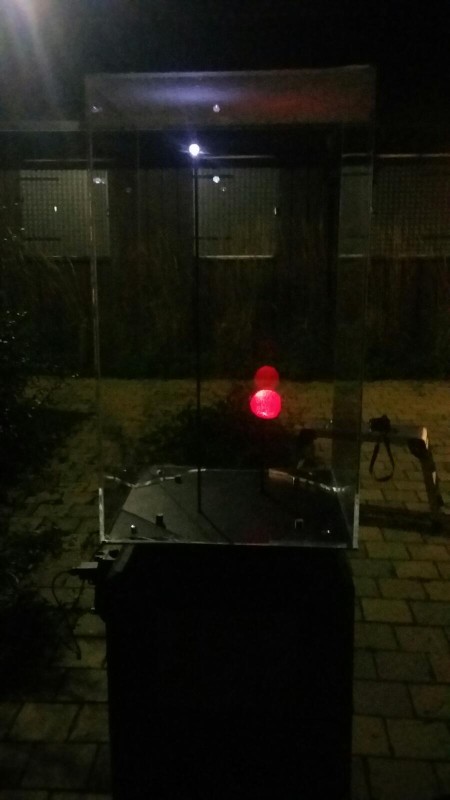* Helt färdigt var inte konstverket, men på kvällen lyste i alla fall dvärgplanetens måne. När allt är fintrimmat lyser dvärgplaneten vackert röd och pratar dessutom med oss.